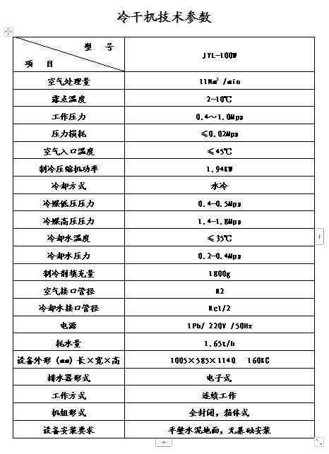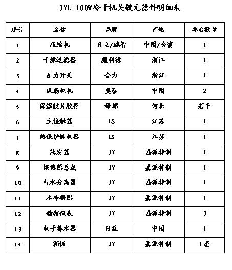 結構冷凍式干燥機本質上是一種熱交換設備,任何型式的冷凍式干燥機都是由空氣熱交換系統、制冷系統、氣水分離系統及電氣控制系統等部分組成。制冷系統由冷媒壓縮機、蒸發器、冷凝器及節流組件(毛細管或膨脹閥)等組成。含有大量水蒸汽的壓縮空氣主要在蒸發器里完成汽—液冷凝相變,在氣水分離器里完成液態水的凝聚與排出,從而獲得干燥的壓縮空氣。所以制冷系統的工作狀況直接決定了冷凍式干燥機的運行情況,而氣水分離器的結構與效率對成品氣的干燥程度(用壓力露點來表示)有至關重要的影響。空氣熱交換器的設計關系到冷凍式干燥機的節能運行,并使壓縮空氣成品氣不致于在機器出口管道內結露。